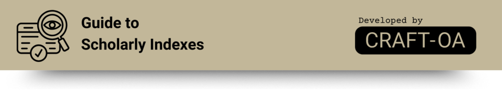 The Guide to Scholarly Indexes is a collection of structured and synthesized documentation about academic publications indexes. The Guide records detailed information about the indexes’ main characteristics, with a particular focus on their data and metadata collection process and requirements. When available, the Guide also provides links to the more exhaustive documentation on the indexes’ websites.